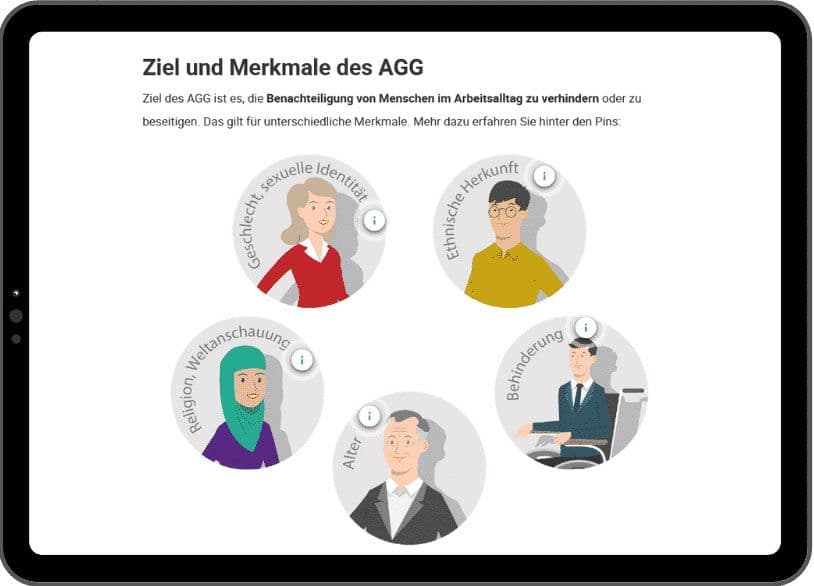 Videos und interaktive Aufgaben steigern das Engagement und den Wissenstransfer. Lerninhalte werden selbst vom Anwender erarbeitet – dies führt zu nachhaltigen Lernerfolgen.