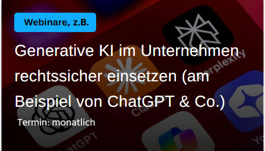 Mit den KI-Produkten von WEKA machen Sie Ihr Unternehmen, Ihre Prozesse und Ihre Mitarbeitenden fit für die Zukunft – fundiert, praxisnah und rechtskonform. Entdecken Sie praxisnahe Schulungen, top-aktuelles Wissen und sofort einsetzbare Tools.
